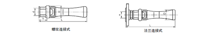 | 注:表中斜線下方尺寸為不銹鋼或塑料混合器,上方為碳鋼混合器。 (2)法蘭連接式灌用噴射式混合器