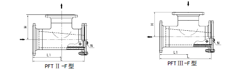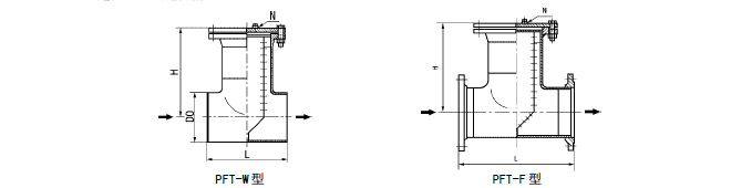 (1)T型對焊連接直通式過濾器(PFT-W型)(DN50~400,PN≤5.OMPa) (2)T型法蘭連接直通式過濾器(PFT-F型)(DN50~400,PN≤5.OMPa)