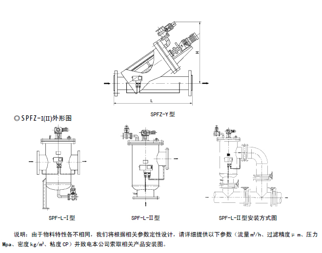 可根據(jù)工藝要求自行設(shè)定 | 安裝尺寸表(SPFZ-Y)