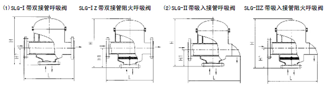 SLG呼吸閥,阻火呼吸閥 產品概述 根據國家標準《石油化工企業設計防火規范》(GB50160—92)之規定:甲、乙類液體的固定頂罐,應設阻火器和呼吸閥。 可見呼吸閥、阻火器是儲罐不可缺少的安全設施。它不僅能維持儲罐氣壓平衡,確保儲罐在超壓或真空時免遭破壞,且能減少罐內介質的揮發和損耗。 我公司生產的呼吸閥,具有結構緊湊、通氣量大、泄漏量小、密封性能好等特點。并研制生產了防爆阻火呼吸閥,阻火器位于呼吸閥吸入口處,徹底杜絕火源進入呼吸閥殼體內,具有體積小、重量輕,檢修、清洗、更換方便等優點。